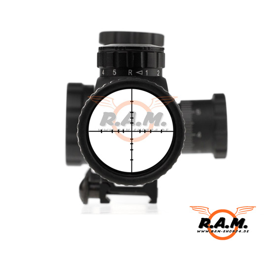 Die präzise Höhen- und Seitenverstellung mit 1/8 MOA Klickverstellung erlaubt eine exakte Feinjustierung. Durch die integrierten Montageringe ist das Zielfernrohr direkt mit Picatinny-Schienen kompatibel und schnell einsatzbereit.