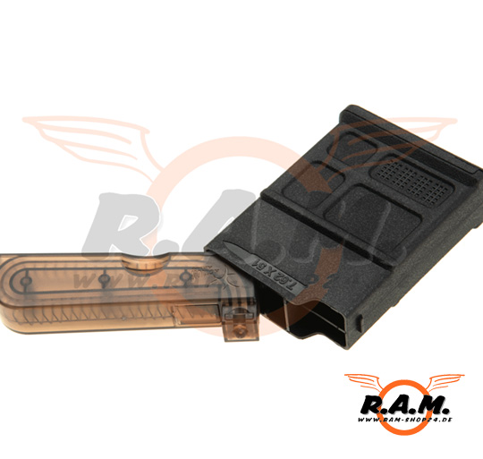 Das Scharfschützengewhr T10 von Action Army kommt mit einem ergonimisch geformten Schaft aus robustem Polymerkunststoff. Die Wangenauflage lässt sich perfekt auf die eigenen Bedürfnisse anpassen, um eine bestmöglich Position hinter der Optik zu gewährleisten. Mit einer 21mm Picatinny Schiene lassen sich dabei alle gängigen Optiken montieren. Durch den VSR-10 Standard hat man auch auf lange Sicht hin keinen Mangel an Tuningteilen.
