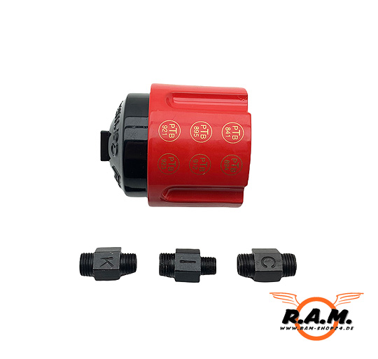 Der MULTI-SHOOTER ist nur geeignet nur für Schreckschusswaffen. Ihm liegen 3 verschiedene Gewindeadapter ( Typ C, I und K) bei.