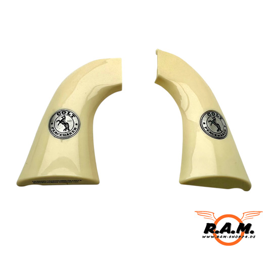 Colt SAA Griffschalen, weiß mit "Colt Peacemaker "Logo *Rarität*
