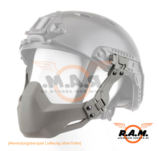 Diese Halbmaske oder auch Kieferschutz für FAST Helme besteht aus ABS-Material und bietet zuverlässigen Rundumschutz. Die Kieferverbindung ist mit einem Scharnier ausgestattet und kann separat geöffnet werden.