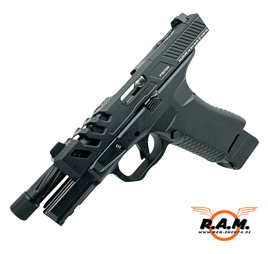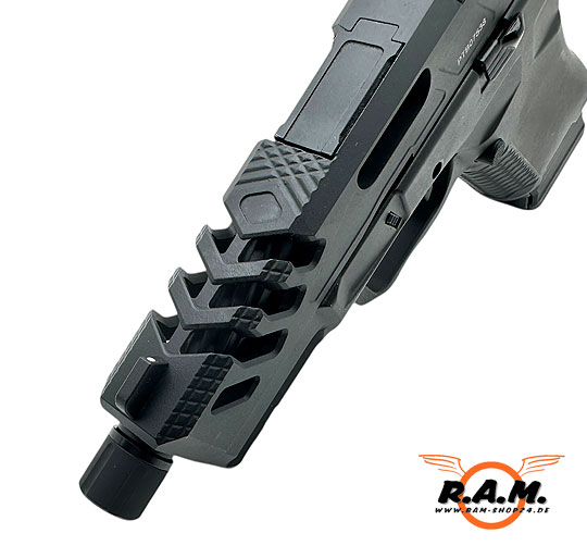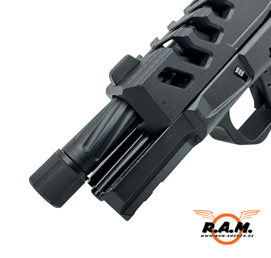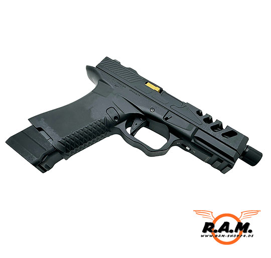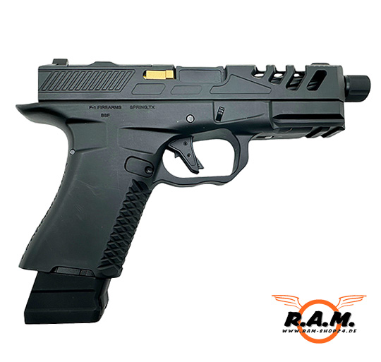 Die BSF19 ULTIMATE ist der absolute Hammer. Qualität, Gewicht und Verarbeitung sind echt heftig. Die Waffe hat viele mega Customteile und Updates u.a. ein kanellierter Außenlauf mit 14ccw Gewinde für eine noch geilere Optik und somit auch vorbereitet für alle möglichen Tracer, Schalldämpfer, Mündungsfeuerdämpfer, der Schlitten ist im vorderen Teil geschlitzt somit sieht man den wunderschönen Lauf noch besser. Zusätzlich ist sie von F-1 Firarms lizenziert mit entsprechenden Markings, geile riffle Pattern auf dem Griffstück für besseren Grip,, Picantinny Schiene unter dem Lauf und der Hammer Sie ist Optik Ready!! Das heisst ihr könnt eine Plate am oberen hinteren Teil des Schlittens abnehmen und dort viele verschiedene Red Dots montieren!!
