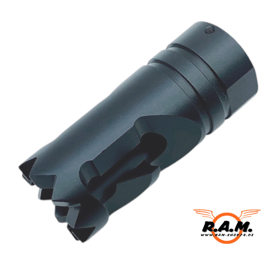 Kompatibel u.a. mit MILSIG, T68, Maxtact, RAP4 468, Hammerhead OneShot Barrels und zahlreichen weiteren. Dieser Muzzlebreak mit Glasbrecher ist ein optisches Highlight