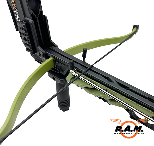 Die Sehne ist bei jeder Armbrust der größte Schwachpunkt. Die in Deutschland Handgeflochtene Dyneema Pro Sehne in 3mm beseitigt dies. Die offene Visierung ist nicht für jeden Schützen geeignet und speziell im Dunkeln oder bei schlechten Lichtverhältnissen einem guten Red Dot weit unterlegen. Das SOLIDCORE RG verfügt über verschiedene Absehen die "blitzschnell" durchgewechselt werden können. Zusätzlich kann das Red Dot in zwei verschiedenen Farben (rot/grün) beleuchtet werden und die Beleuchtung kann in mehreren Stufen "gedimmt" werden. Eine Schnelle und zuverlässige Zielerfassung ist somit jederzeit gegeben. Der Taktische Frontgriff ist wesentlich "steifer" und ergonomischer und kann ganz einfach ohne Werkzeug montiert / demontiert oder in seiner Position verändert werden.