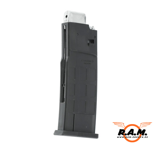Das Magazin ist für 4,5 mm (.177) Stahl-BB ausgelegt und fasst 30 Schuss. Als Ersatzmagazin ist es außerdem praktisch, um ein defektes oder verschlissenes Magazin schnell zu ersetzen.