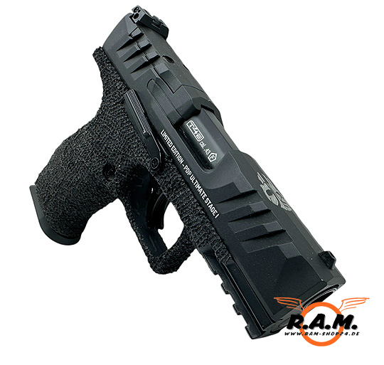 1 x PDP Compact 4" T4E cal. 0.43 mit stippeling und seitlicher Gravur "LIMITED EDITION - PDP ULTIMATE STAGE I" sowie SOLIDCORE Punisher auf der Oberseite vom Schlitten
